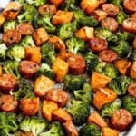 Roasted Sweet Potatoes, Sausage, and Broccoli Sheet Pan Meal
